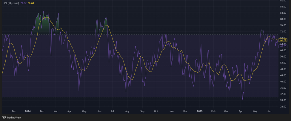 El RSI de 62.55 indica que la acción no está sobrecomprada, pero se acerca a ese nivel. Esto sugiere que hay cierto entusiasmo en torno a la acción, aunque no extremo. Si bien no es una señal de alerta inmediata, los inversores deben monitorear este indicador para evitar entrar en zonas de sobrevaloración técnica.